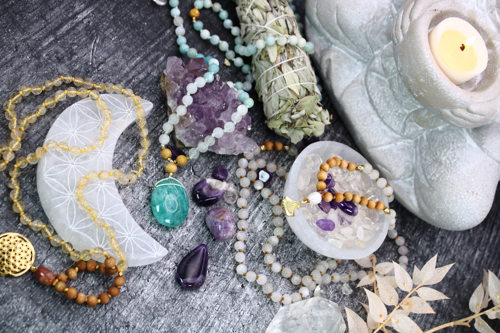 Zum Ent- und Aufladen können bestimmte Heilsteine verwendet werden, Eine Schale mit Hämatit-Granulat eignet sich hervorragend zum Entladen. Auch ein Räucherset zur Reinigung hat denselben Effekt. Bergkristall sowie Selenit laden die Steine wieder auf. Eine Amethyst-Stufe kann deine Edelsteine gleichzeitig Ent- und Aufladen. Mondlicht ist ebenfalls gut geeignet, Sonnenlicht nur in geringen Maßen in der Früh oder Abends. Achte bitte bei Amethyst, Rosenquarz und Bergkristall darauf, unbedingt Mondlicht zu verwenden, da die Steine sonst mit der Zeit ausbleichen. Bewahre deine Mala am besten über Nacht in einer Holz-Schatulle auf oder lege sie auf einen der genannten Edelsteine.