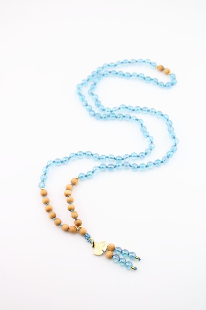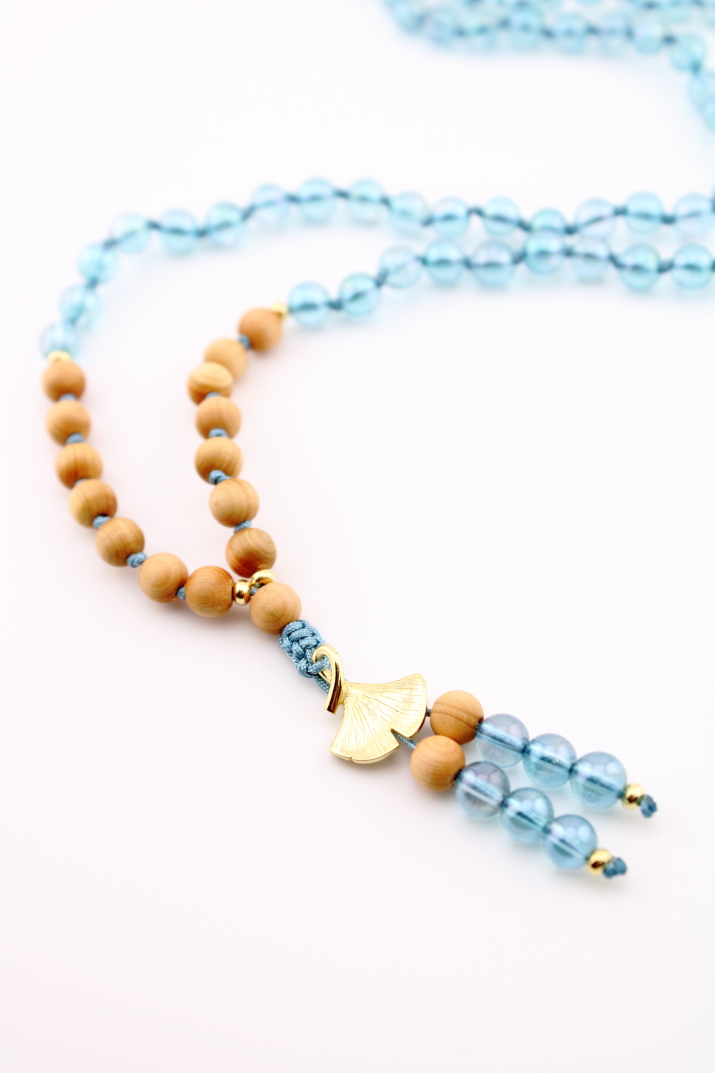 Diese Mala besteht aus einer Kombination von Edelstein- und Holz-Perlen die Energiekanäle reinigen können und zur Erhöhung deiner persönliche Energie beitragen. Frische Energie für deinen Flow. Das Herz-Stück repräsentiert mit den Perlenschnüren das Alpha und Omega, zusammengehalten durch das Symbol des Ginko-Blattes. Passend zur Mala ist optional ein passendes gefädeltes Armband erhältlich. Weitere Details findest du in der Beschreibung. Hast du kleine Änderungswünsche oder ein ganz individuelles Thema dann schreibe uns doch einfach an info@ginkodesign.at, wir fertigen deine Mala ganz nach deinen Wünschen.
