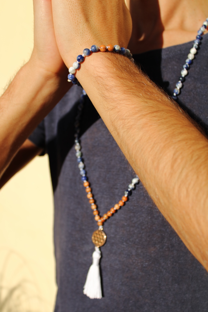 Leicht und frei bin ich ganz bei mir. Dieses Mala-Armband besteht aus einer Kombination von natürlichen Edelsteinen und Holz-Perlen die sich in ihrer Wirksamkeit ergänzen. Ein geknüpftes Armband ist ideal in Kombination mit einer Mala-Kette. Diese können auch separat für eine Meditation verwendet werden. Nähere Details zu den verwendeten Materialien findest du in der Beschreibung.