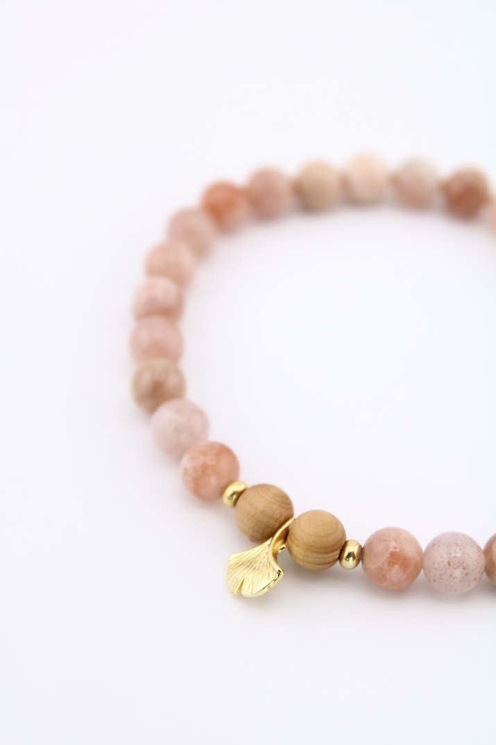 - 108 Sonnenstein- und Sandelholzperlen, Ø 6mm
